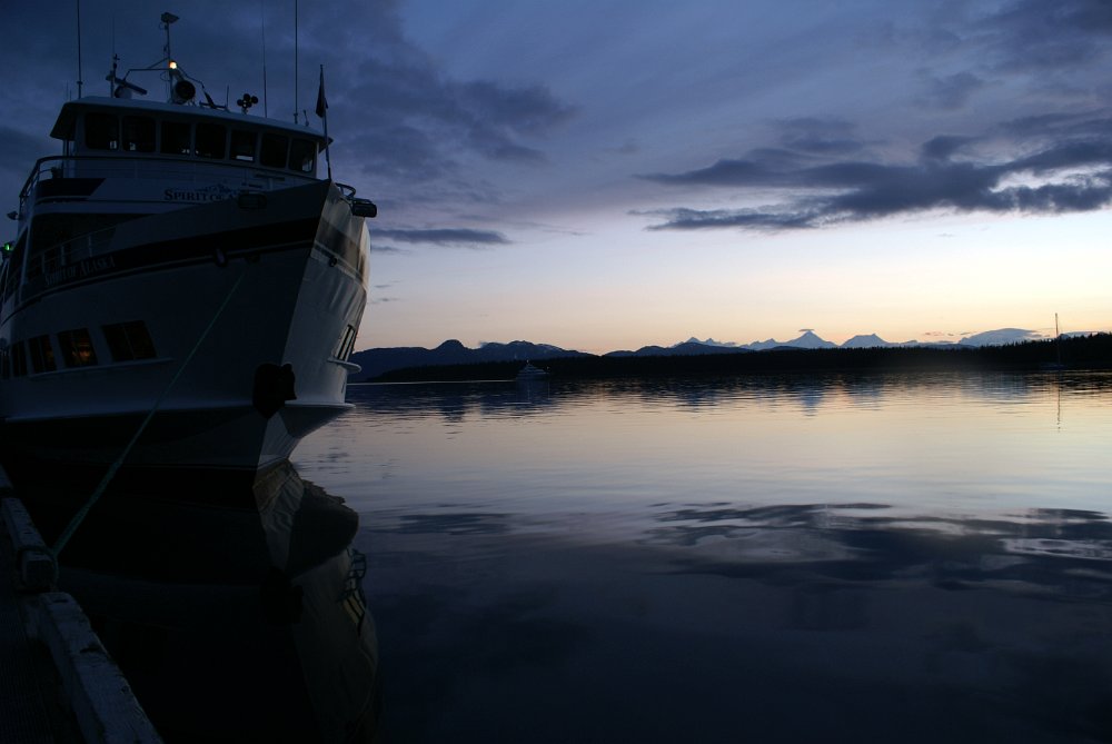 We flew from Anchorage to Juneau to embark on a small ship cruise of Alaska's Inner Passage aboard the "Spirit of Alaska". Cruising aboard a small ship gave us a much closer up vantage point without any sacrifice of comfort.
